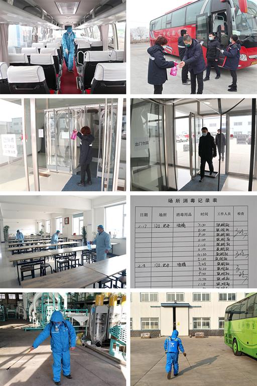 公司辦公樓、生產(chǎn)車間、食堂、通勤車全面徹底消毒。